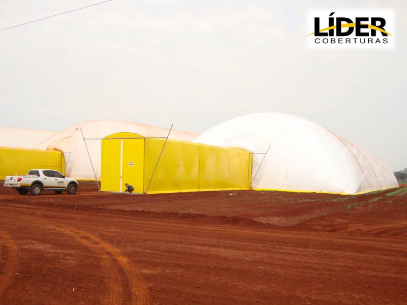 Mantido por um insuflador para armazenamento temporário de colheitas, estocagem e empilhamento de safras de alimentos, madeireiro, portuário, embalagens, vestuário, calçados, fertilizantes e muitos outros.